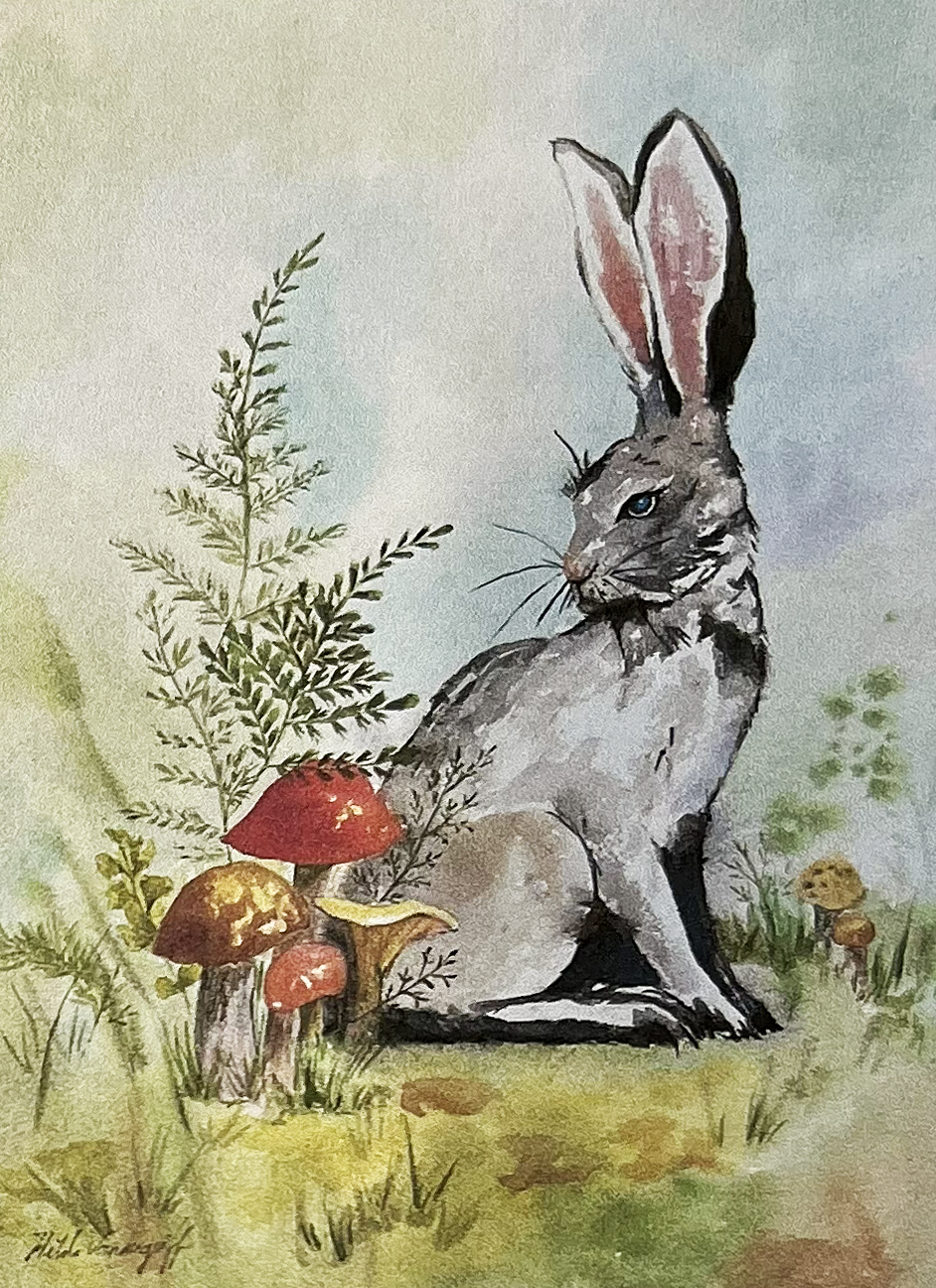 Learn how to paint a hare in a forest like setting with ferns and mushrooms. A soft background, brush stroke techniques and values will be demonstrated. You will receive a lesson handout and watch demonstration steps on the painting process.