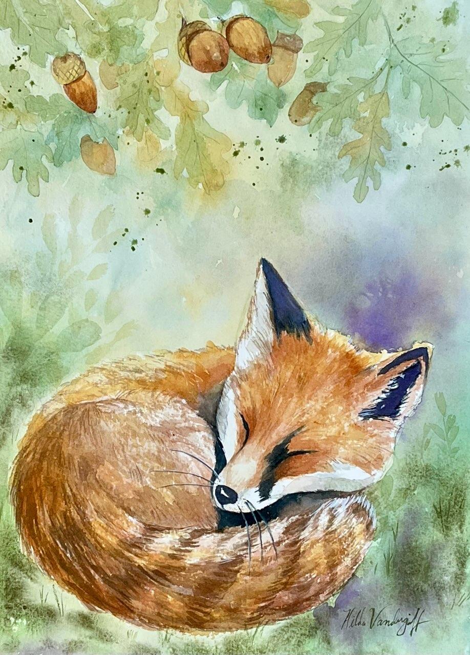 Learn how to paint a most charming sleepy fox in a forest fall setting. Learn to mix colors, how to apply, where to have contrast and values.