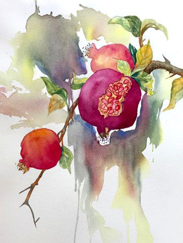 Learn how to paint a colorful pomegranate composition painting. A loose abstract background will be optional. Learn about values, how to mix colors and how to apply watercolor techniques. This is a class for anyone no experience required. Come have fun painting and learn about watercolors.