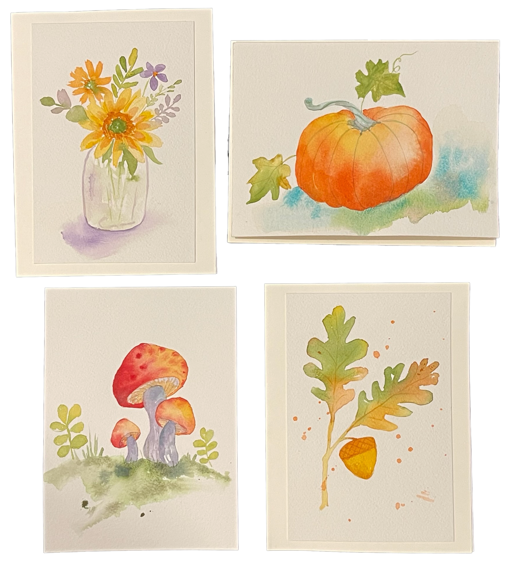 Learn how to make your very own fall inspired greeting cards with watercolors. In this lesson you will learn to use different mediums to create interesting cards using watercolor. You will receive a lesson handout and watch demo steps on the painting process and card making. Come have fun painting and learn about creating cards.