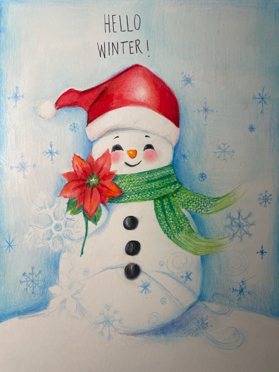 Ring in the holiday season with a little merry snowman! Your choice to either frame this as holiday decor or use it as a custom holiday card. instructor will provide cardstock and envelopes to mount your piece as a greeting card. Very beginner friendly, we will go step by step in color pencil.