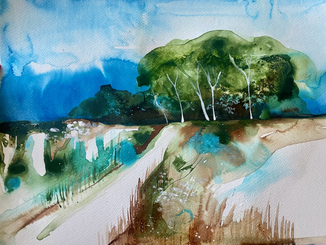 This class is for the landscape enthusiast who wants to try a different technique with acrylic inks. We’re going to make smaller test forms before tackling a larger composition using just watercolor paper, water, acrylic inks and household materials. A relaxing and modern abstract approach for all levels.